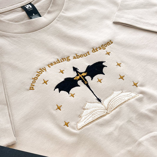 Probably Reading About Dragons Embroidered Tee
