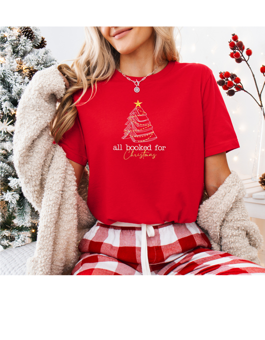 All Booked for Christmas Embroidered Tee